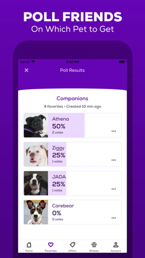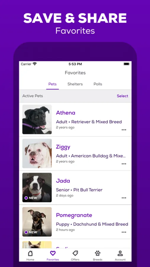 - Share adoptable pet profiles with friends or poll your family on which pet to adopt