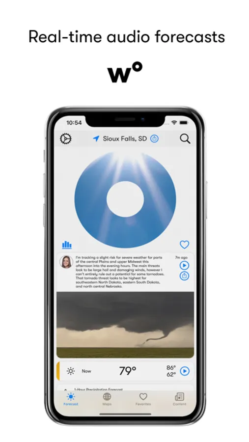 The first weather app that fully integrates into your home and car with real-time audio weather reports and emergency weather notifications; personalized for you.