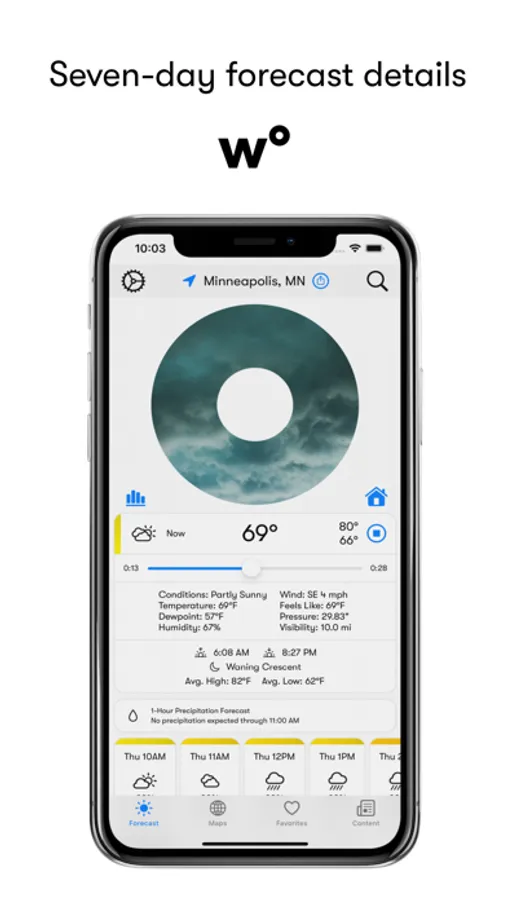 With Apple CarPlay, Weatherology provides a hands-free, safe way to get the latest weather in your car.
