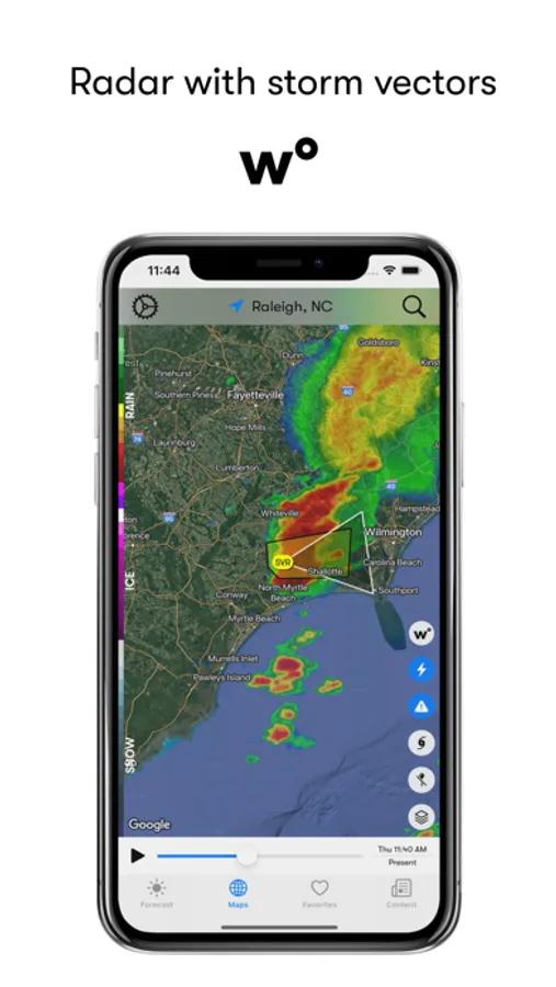 Although our expertise is audio, we are meteorologists, so we offer all the tools you need to stay informed. Up-to-the-minute radar that loads quickly and zooms in to your specific location. Storm vectors that illustrate current storm location and storm movement.