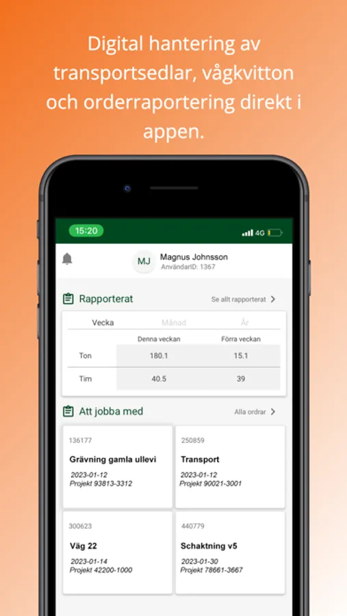 Som leverantörsanvändare kan du i appen bland annat ta emot förfrågningar på nya uppdrag, se alla aktuella uppdrag, skicka och ta emot meddelanden och skapa digitala transportsedlar.