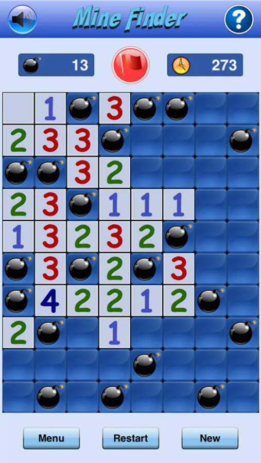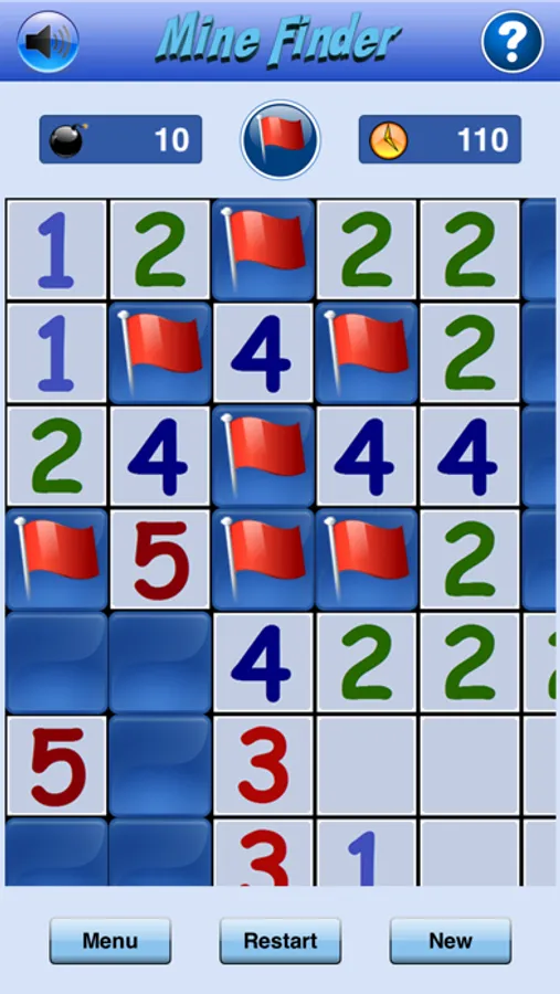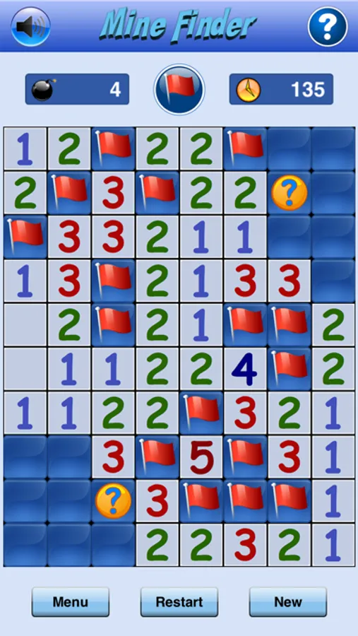 The goal of the game is to clear a minefield without detonating a mine. The game is won when all the squares without mines are revealed. Touch where you think there won't be a mine to reveal that location, if a number appears, it indicates how many total mines are in the 8 squares surrounding that number. You can mark with a flag any square where you believe a mine may be or if you have any doubt of the presence of a mine in a given square, you can mark it with a question mark.