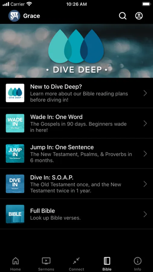 You'll have access to a full Bible within the app, integrated with the Dive Deep reading plan! The app will even read the Bible to you!