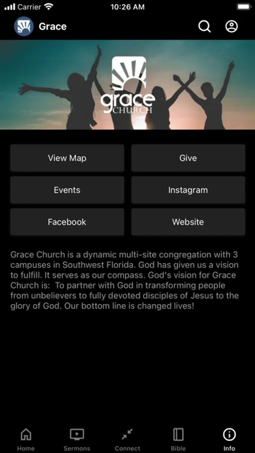 Grace Church is a dynamic multi-site congregation with 3 campuses in Southwest Florida. When you download this FREE app, you'll have instant access to these features: