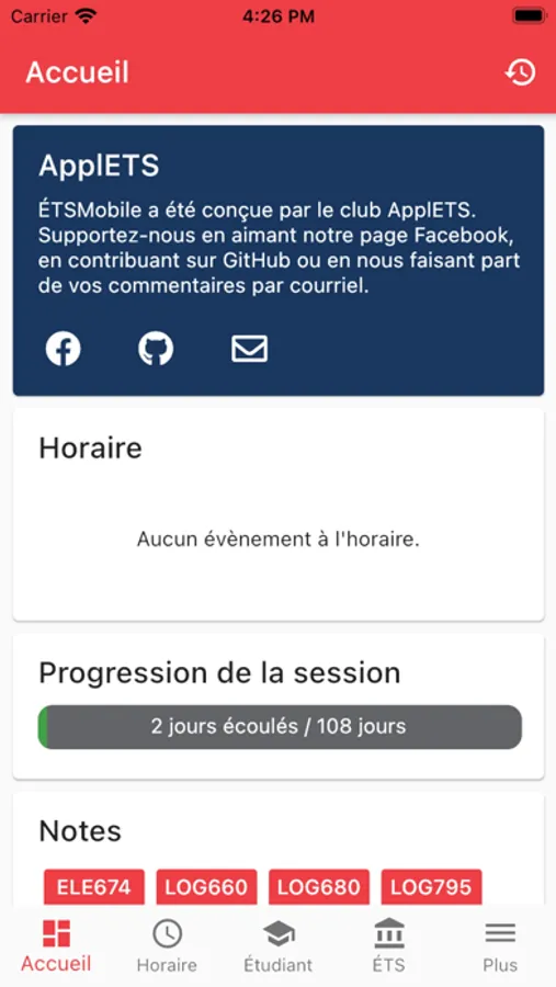 This application is design and developed by the App|ETS student club members. It is an application made BY and FOR students where everyone is free to contribute to their development. If you wish to participate in the development of this application, please join us at https://clubapplets.ca/contact