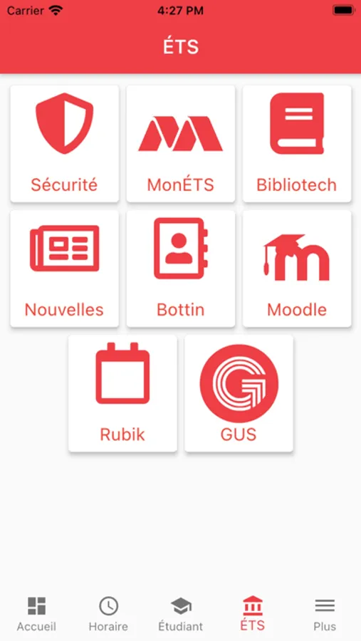 ÉTSMobile is a mobile student portal gathering useful services for the students of the École de technologie supérieure.