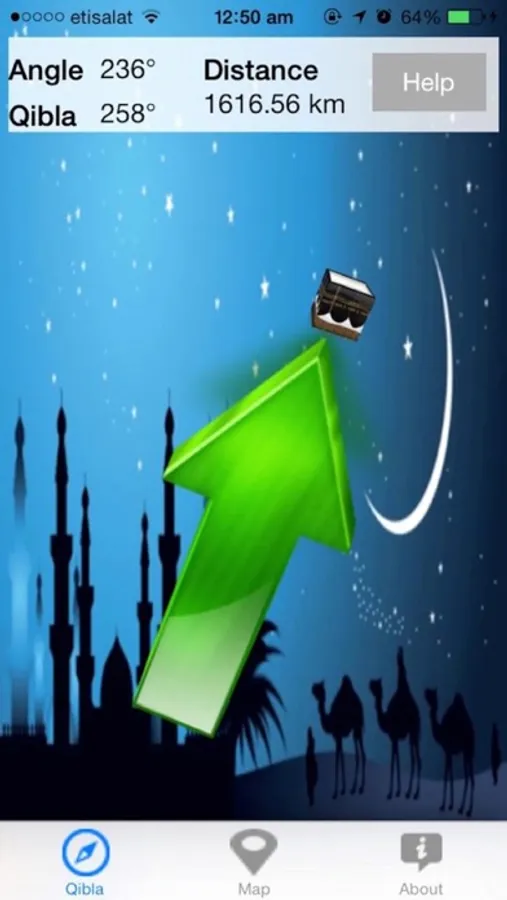 يوفر هذا التطبيق إتجاه القبلة / الكعبة من أي مكان في العالم. يتم عرض المسافة بين مكان المستخدم والكعبة (مكة المكرمة) أيضا.