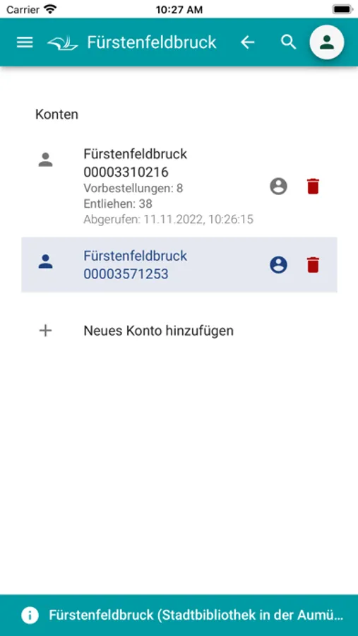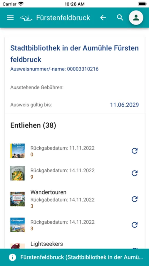 - Anzeige der entliehenen Medien im Konto