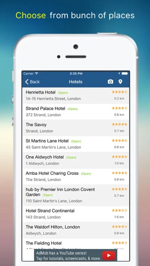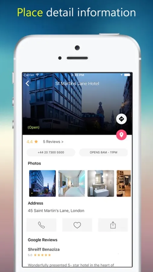 You can also mark some results as favorites and use them later. The app brings every possible details of the places on your phone.