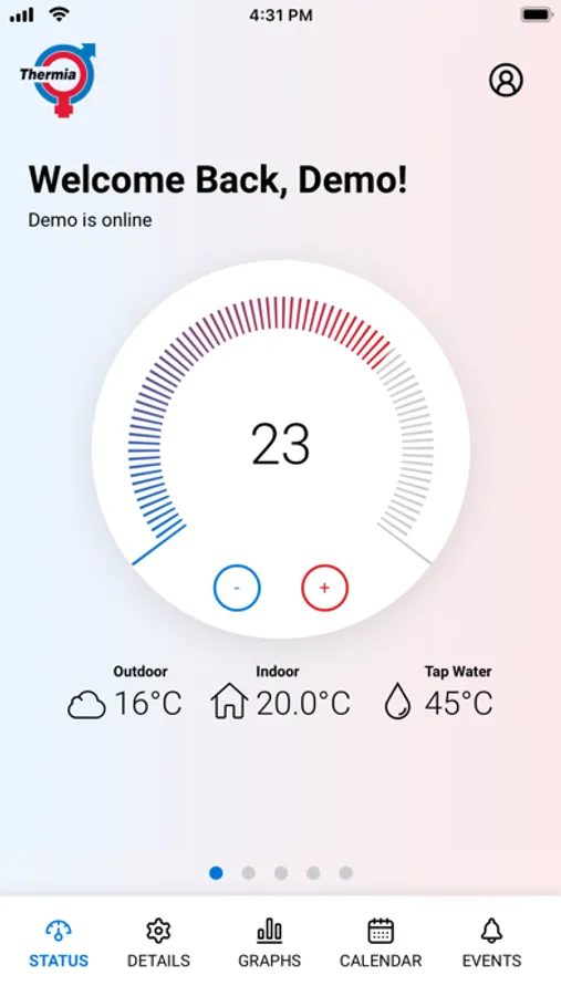 With the Thermia Online accessory, you can control and monitor your heatpump from any smartphone, computer or tablet, wherever you are in the world. For example, you can lower the temperature when you are on holiday, and increase it for when you come back. If you come home earlier than expected; no problem - using Online, you can easily ensure that your house is warm and comfortable whenever you need it to be. If anything unexpected comes up and needs to be fixed, you will immediately receive this information via Online. Contact your retailer for more information.
