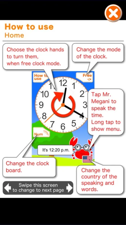 It is a app of the clock that you can turn the clock hands, watch the time and listen to it.