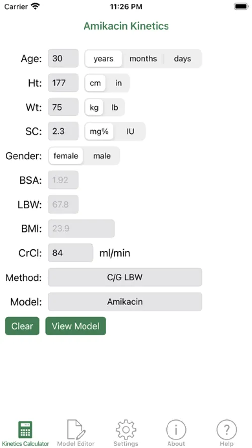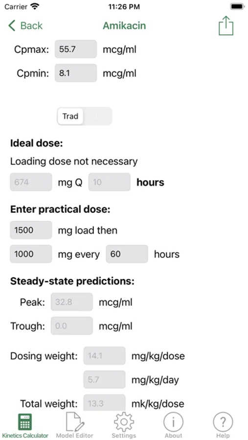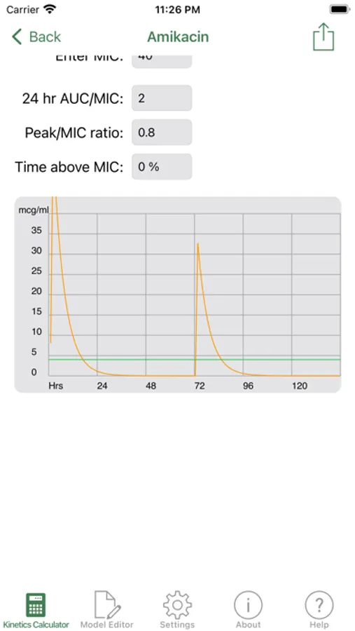 AbPK also includes a drug model editor which enables you to add multiple drug models for any 1-compartment open model. To illustrate this utility, a Ceftazidime model is included.