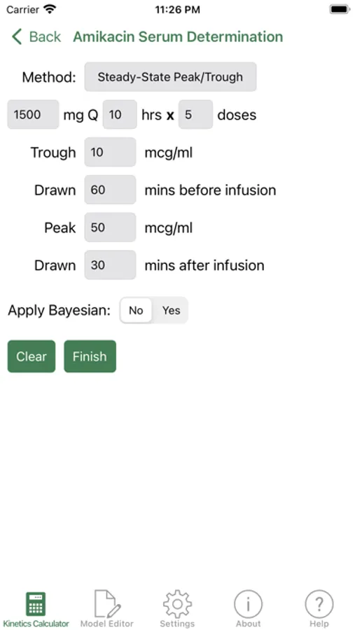 AbPK performs pharmacokinetic dosing of common antibiotics for which serum levels are monitored: aminoglycosides and vancomycin.