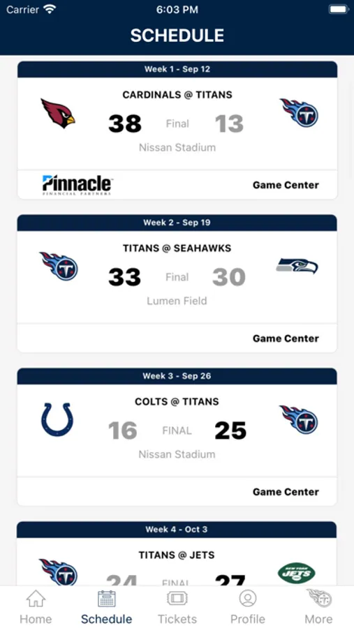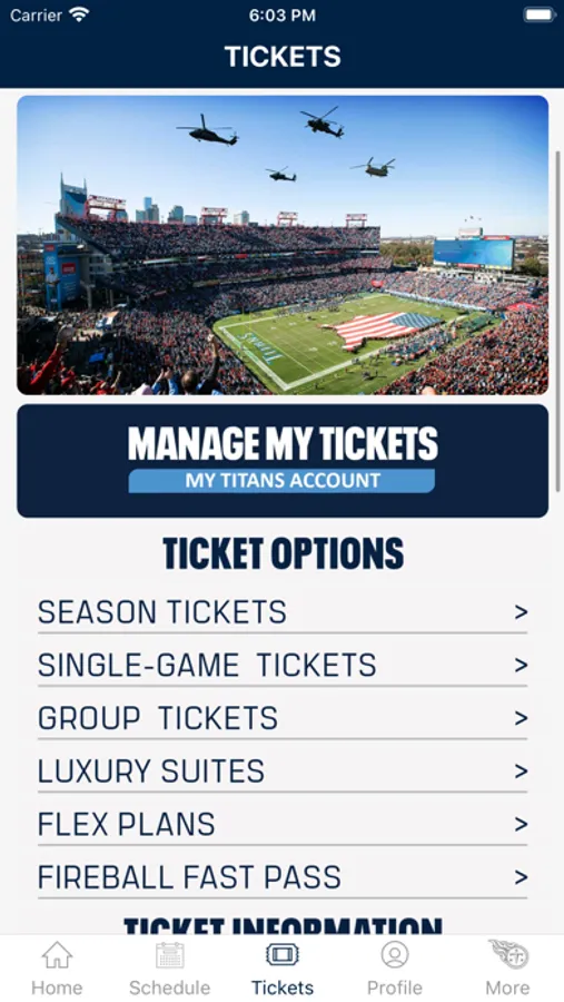The Titans Mobile App is the official app of the Tennessee Titans and Nissan Stadium. The Titans Mobile App keeps you connected all year long with team news, stats, video content, sweepstakes information and more. It also will enhance Titans game days with mobile ticketing and in-stadium messaging.