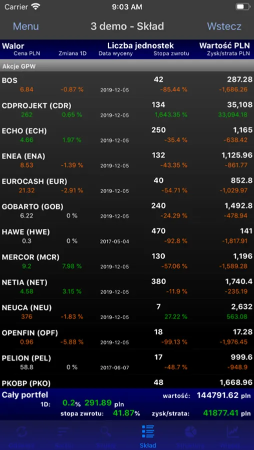 ● W wycenie portfela są uwzględniane splity, PP, dywidendy, konwersje i wszystkie inne operacje