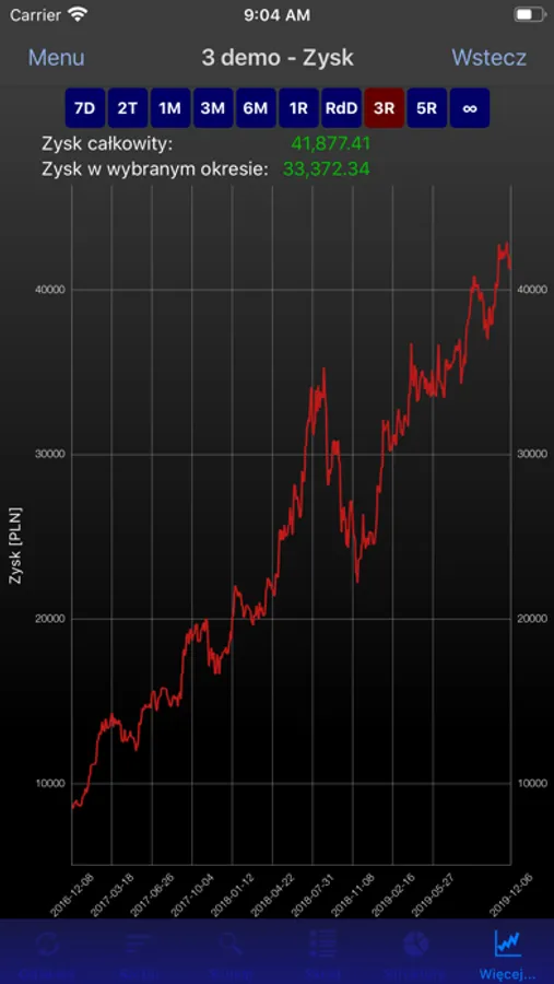 ● wykresy obrazujące zysk, wartość i wiele innych wskaźników w czasie