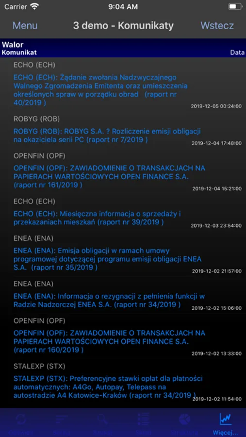 ● Powiadomienia o komunikatach ze spółek bezpośrednio na Twój smartfon.