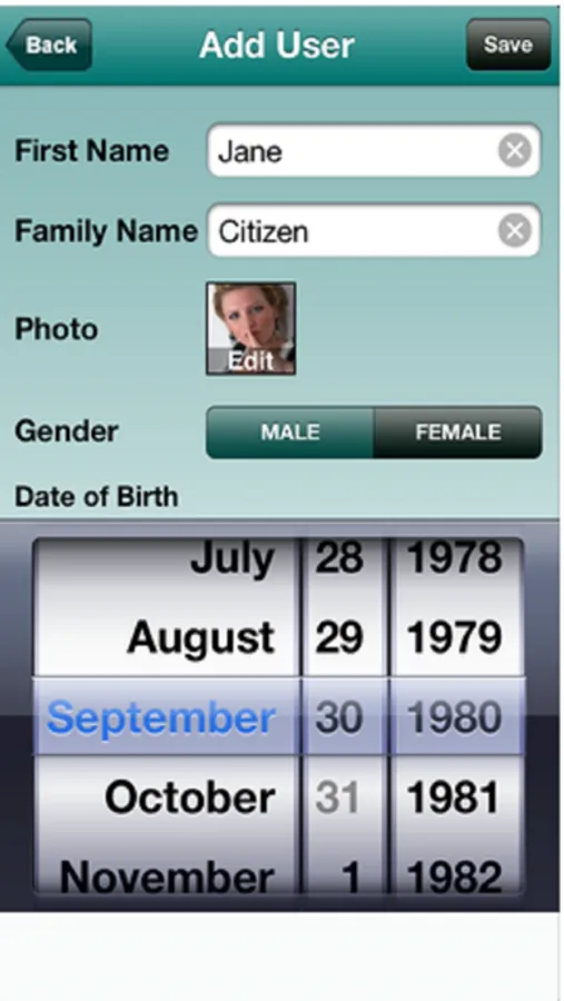 The app can store and monitor results from multiple individuals with name and photo ID.