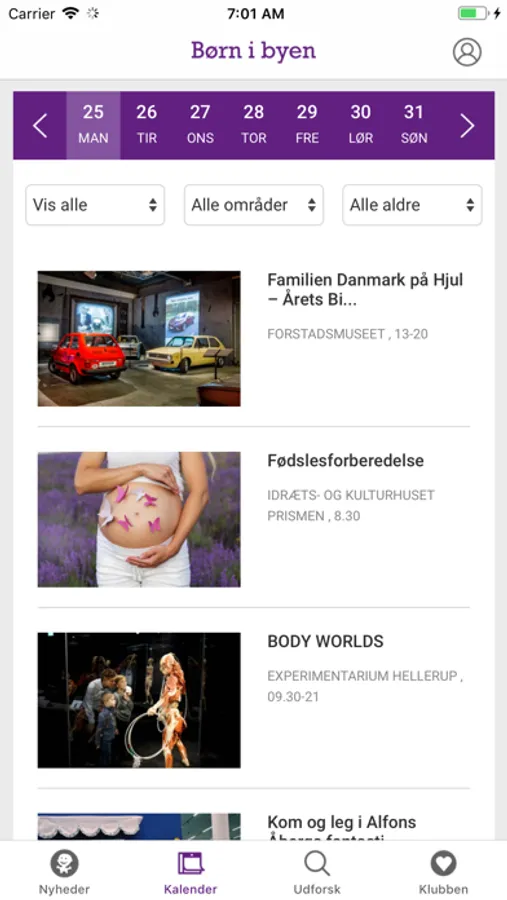 + Kalender: Få hurtigt overblik over byens bedste aktuelle events for børn.