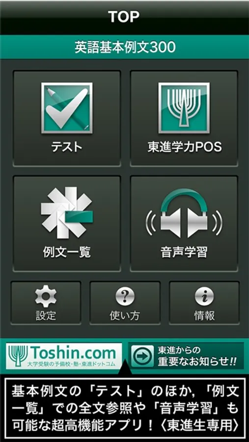 ※「iOS7」の環境で「東進学力POS」にログイン(ID・PWを入力して送信)する際,強制終了(またはフリーズ)してしまうという問題が生じております。OSの切り替わりに伴い,既存のログインプログラムが機能しなくなってしまったことが原因です。ご迷惑をおかけして誠に申し訳ございません。早急に改修を進めてアップデートいたしますので,ご容赦の程何卒宜しくお願い申し上げます。