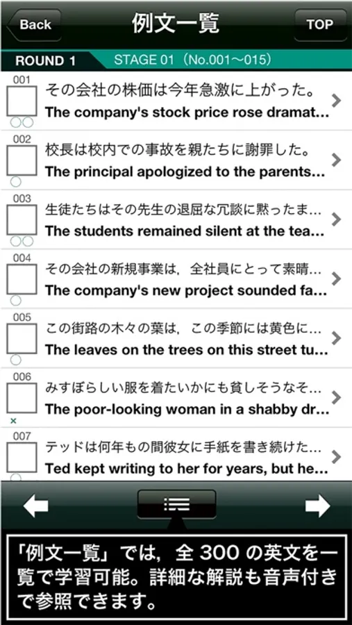 ◎例文を一覧表示で確認・学習できる