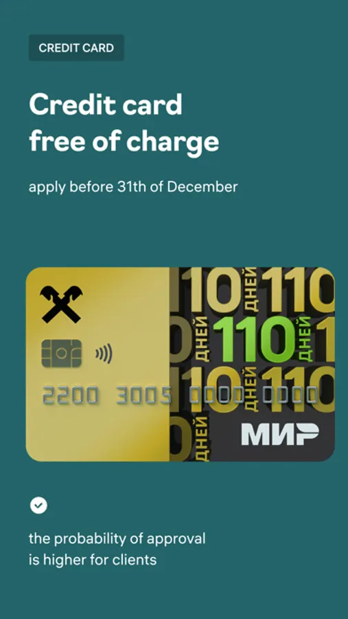 • free transfers to Raiffeisen Bank cards from cards of other banks