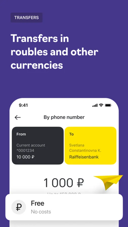 • transfers by phone number to Raiffeisen Bank customers and participants of the Quick Payment System (Alfa-Bank, Tinkoff, VTB, and many others)