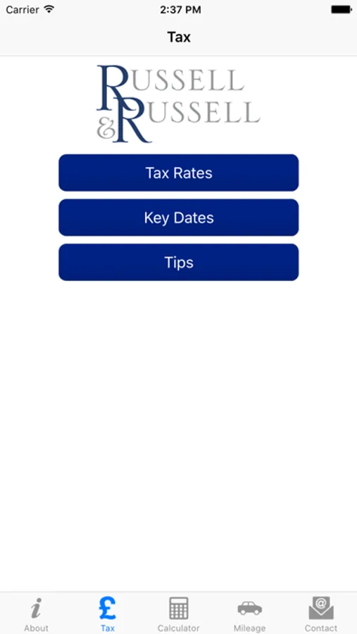 This app is brought to you and your business compliments of Russell & Russell Chartered Accountants, Chartered Tax Advisors & Registered Auditors and is developed by Tax Apps Limited.