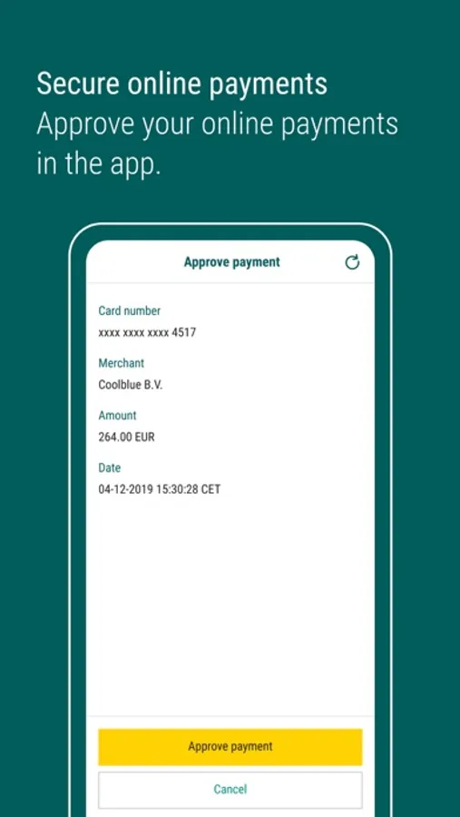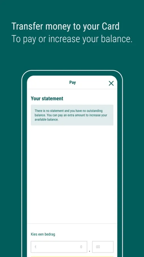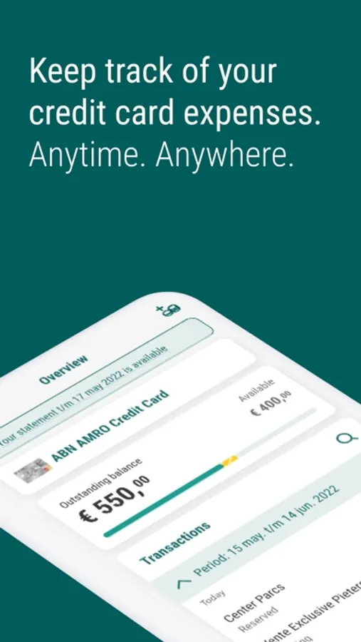 Keep track of your expenses wherever you are with the ABN AMRO Creditcard app. You’ll know what you have left to spend in an instant. Online payments become a breeze with facial recognition or fingerprint. Are you a few euros short on your next online order? No problem! Top up your Card quickly and easily via the app.
