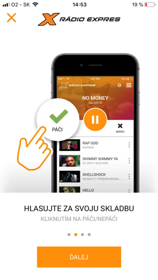 Skladbu, ktorú práve hráme, si môžeš pridať k obľúbeným a ohodnotiť. Tým ovplyvníš vysielanie Rádia Expres (žiadne tvoje osobné údaje sa pri tom nezbierajú). Každú skladbu môžeš hodnotiť každé 2 týždne.