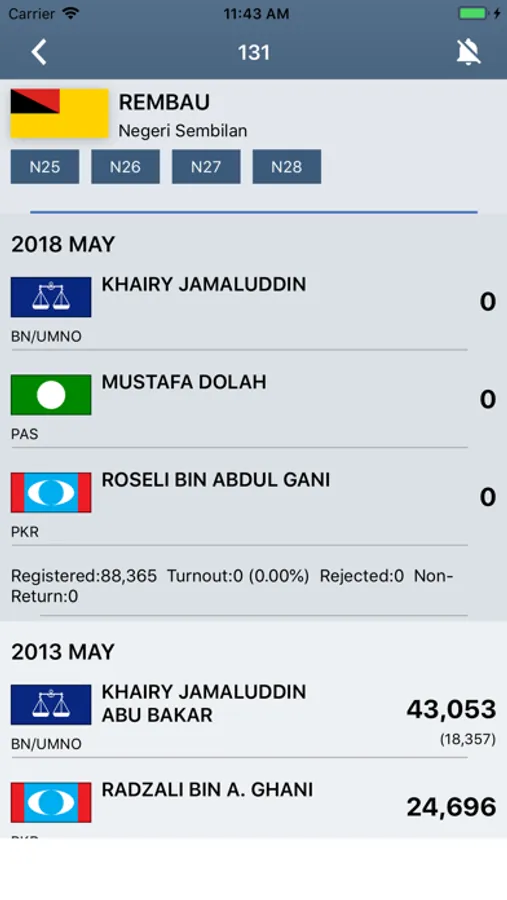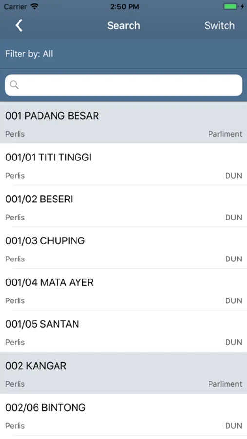 - Flexible search on any key word like name, constituency id, party name, state, Parliament / DUN