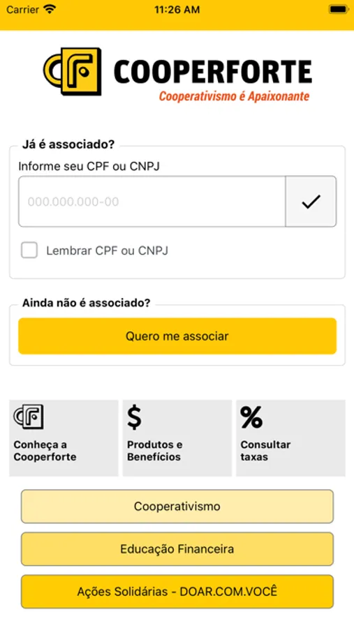 Se você já é nosso associado, utilize sua senha pessoal para acessar o APP COOPERFORTE.