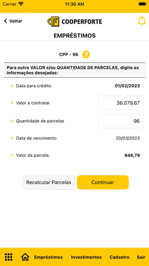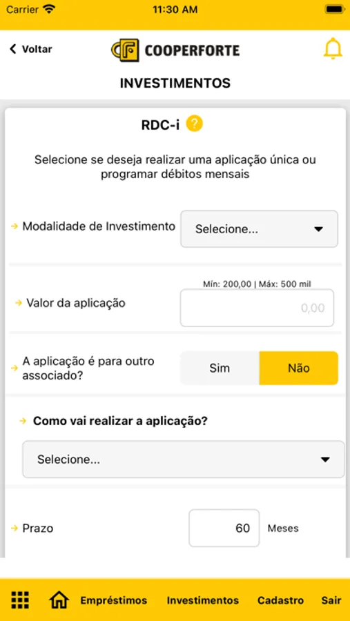 As opções para investir na COOPERFORTE são: