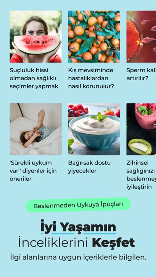 • Uzmanlar tarafından hazırlanan güncel ve bilimsel içeriklerle sağlıklı yaşam ve sağlıklı beslenme faydaları hakkında bilgi sahibi ol.