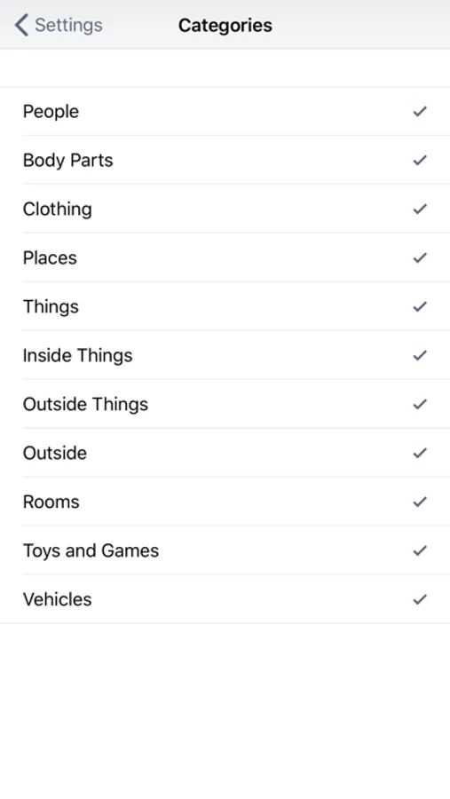 This app uses the content from the Word Practice game from LocuTour’s Artic Games & More CD. There are 200 pictures in eleven categories: People, Body Parts, Clothing, Places, Things, Inside Things, Outside Things, Outside, Rooms, Toys and Games, and Vehicles. There are four apps in the series: Show Me… People, Places, and Things; Show Me… Actions; and Show Me… Animals, Food, and More; and Show Me… Social.