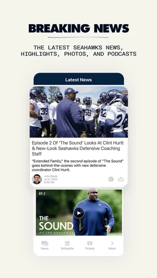 Features include:News, Videos and Photos: The latest headlines and views of everything the team does from gameday at Lumen Field to practice at the Virginia Mason Athletic Center. Watch highlights from every game on your device.