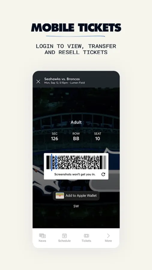 Mobile Ticketing: Use your Seahawks app to view, transfer and sell your Seahawks tickets.