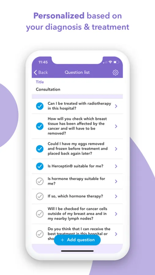 All the content within the app is based on the national guidelines for the treatment of breast cancer and is regularly reviewed by medical professionals in the field.