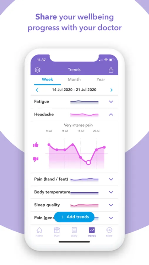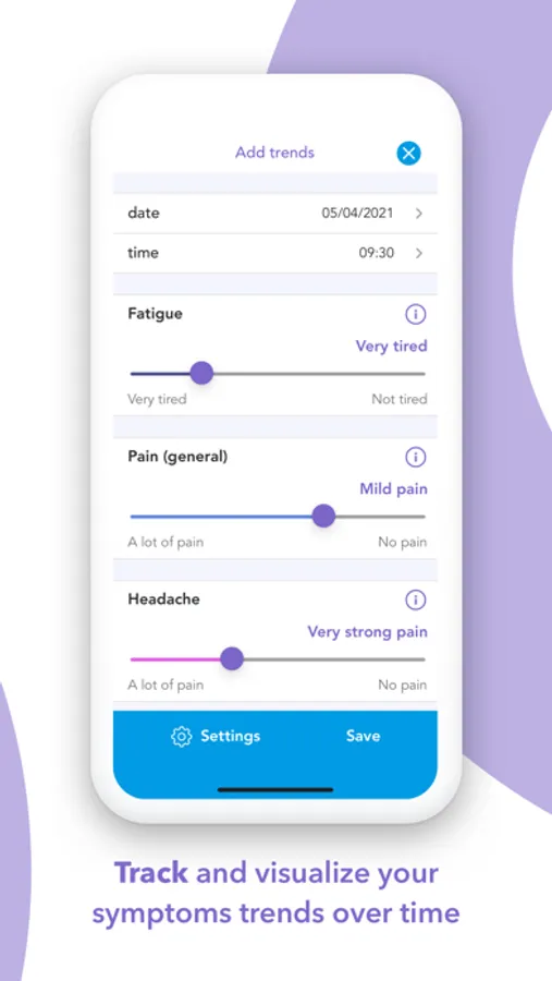 ● Share your tracked symptoms with your healthcare team or loved ones, so they can better understand how you are feeling.