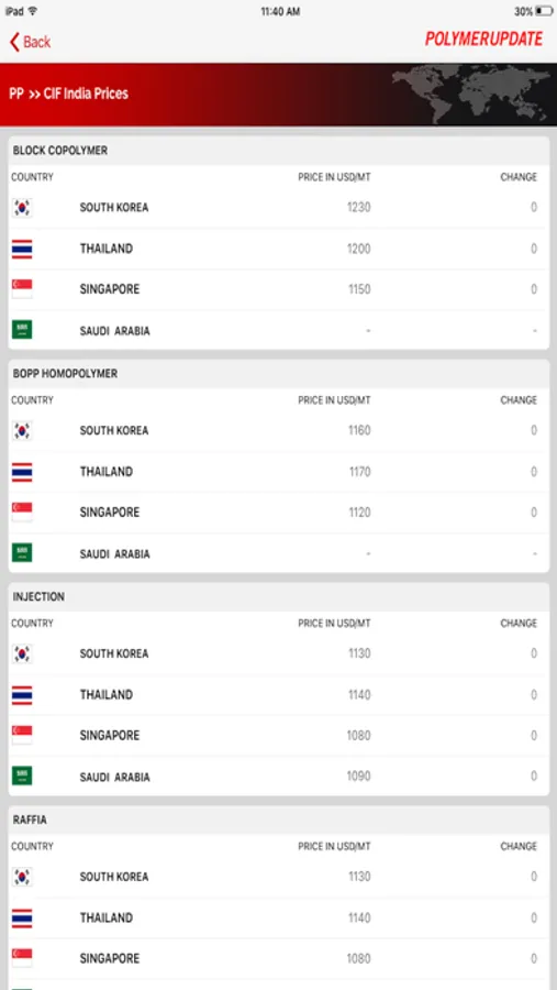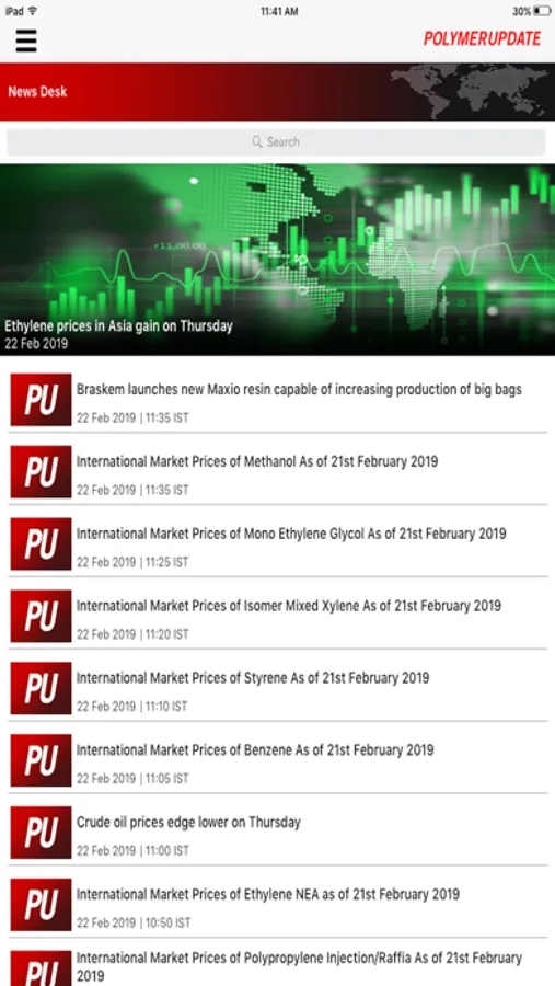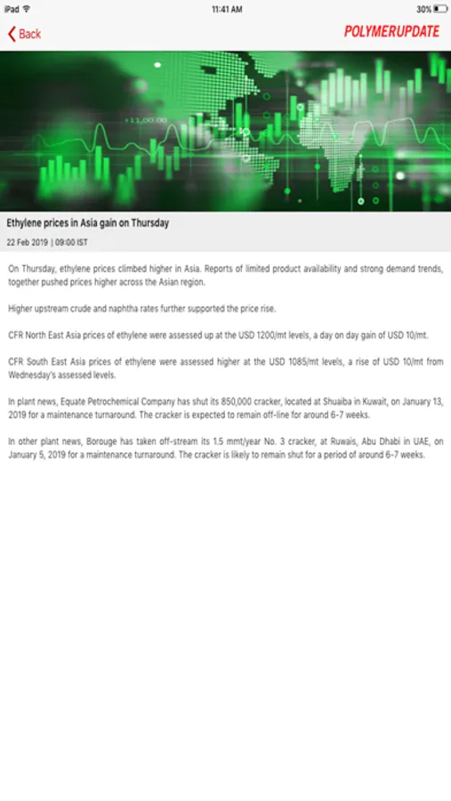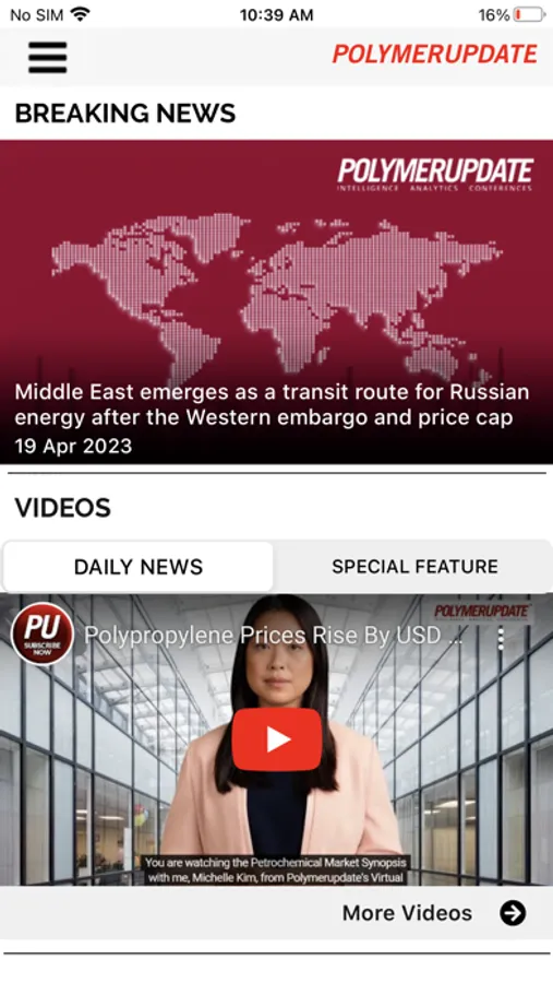 Stay updated on plastics news, industrial polymers and crude oil rates with the Polymerupdate App. Regions covered India, Middle East, South East Asia, Far East Asia, Europe & USA.