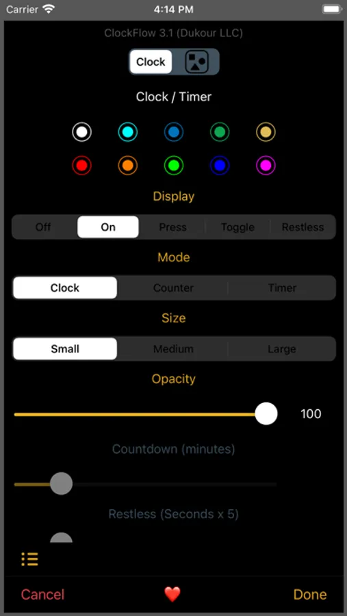Wish to relax or meditate? Let ClockFlow help you. Simply watch the animations passing as the seconds tick by. Or switch off the clock/timer and immerse yourself in a timeless experience… in silence. Can you lose yourself for a while?