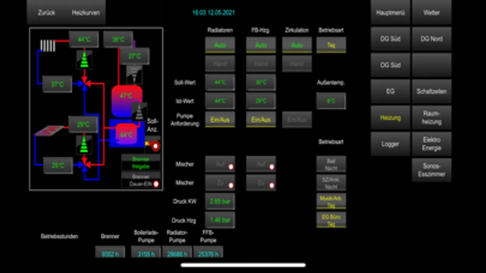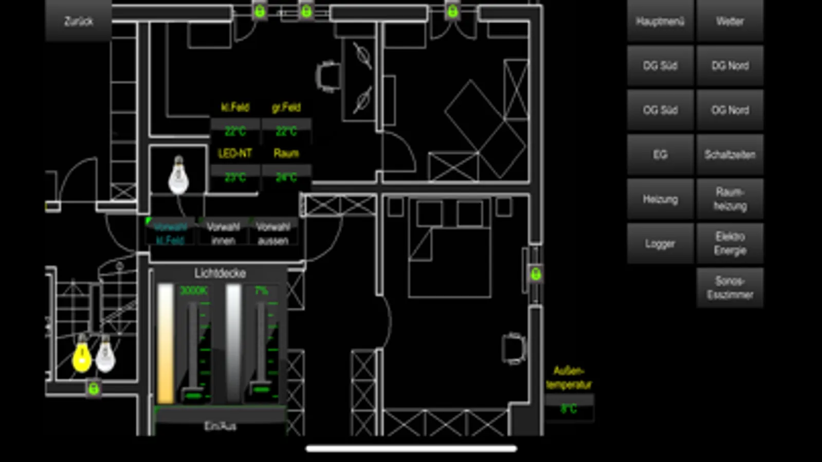 Für PC oder MAC gibt es wahlweise eine einfache, Browser basierende, simpel zu konfigurierende Visualisierung. Für grafisch und funktional anspruchsvolle Kunden gibt es den IPMS-Server mit einer Server - Client Visualisierung, die seitens des Client durch die Java Plattform unabhängig ist - bis auf den Wehrmutstropfen, dass dies auf iPhone, iPad etc. nicht unterstützt wird.
