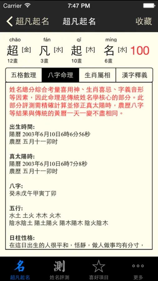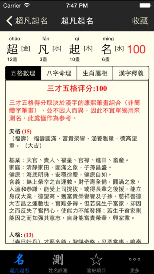 3. 提供五格三才笔划评测,可与各种软件网站进行比对