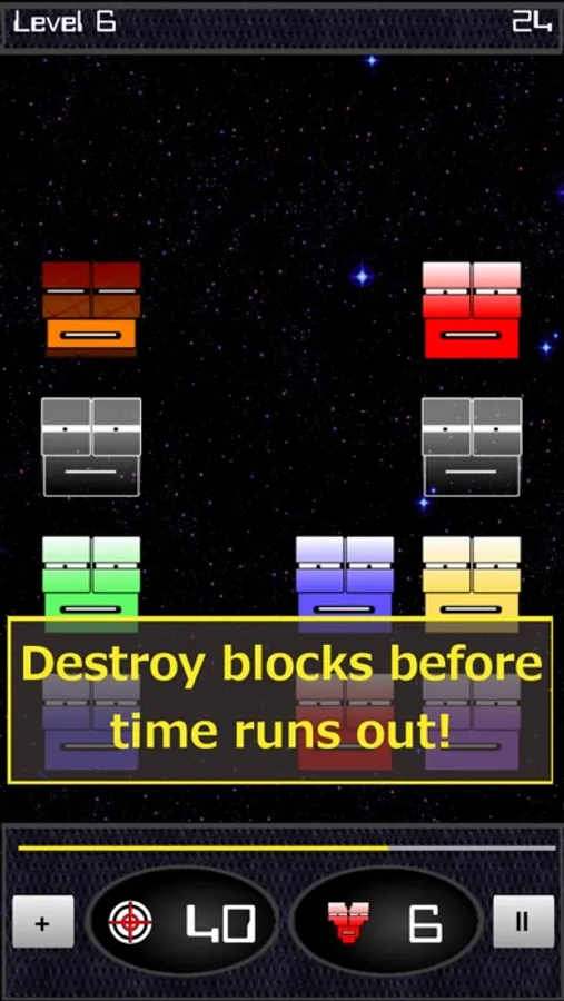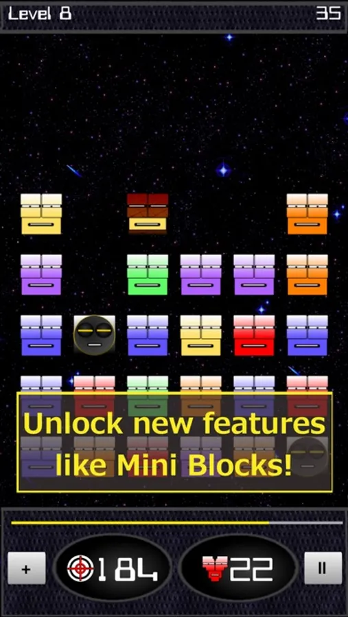 • Special blocks are introduced every few levels to keep game play fresh and interesting. These include Bombs, Mini Blocks, as well as Armoured and Stealth Blocks.