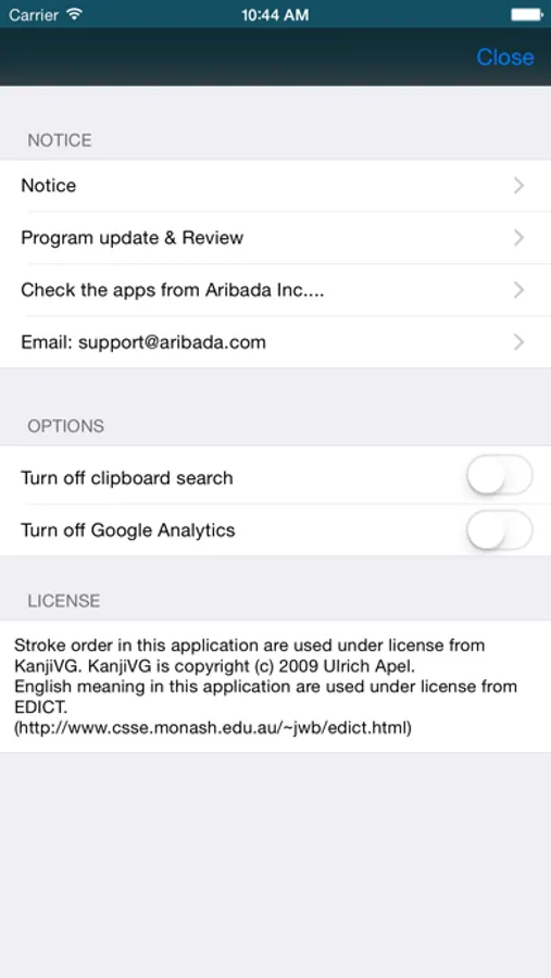 Stroke order in this application are used under license from KanjiVG. KanjiVG is copyright (c) 2009 Ulrich Apel.