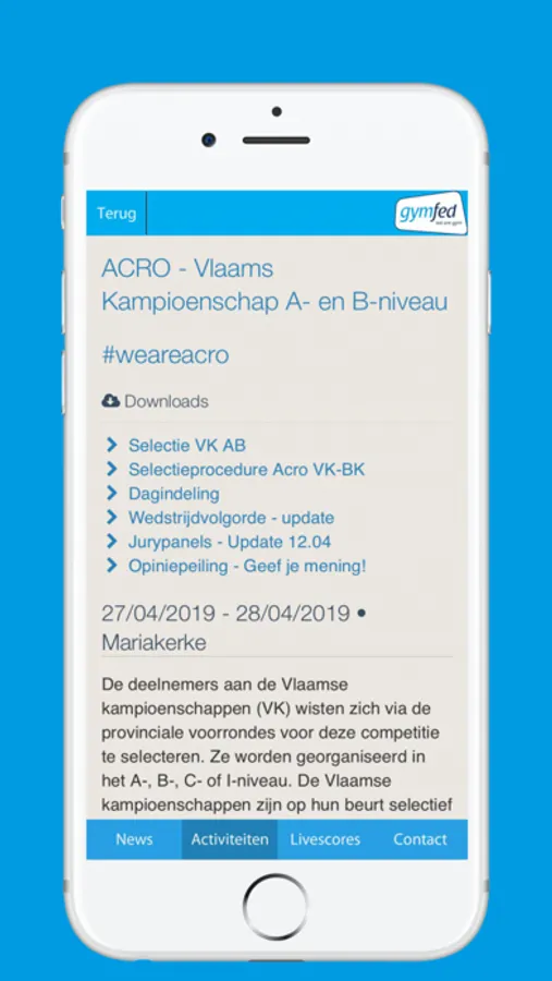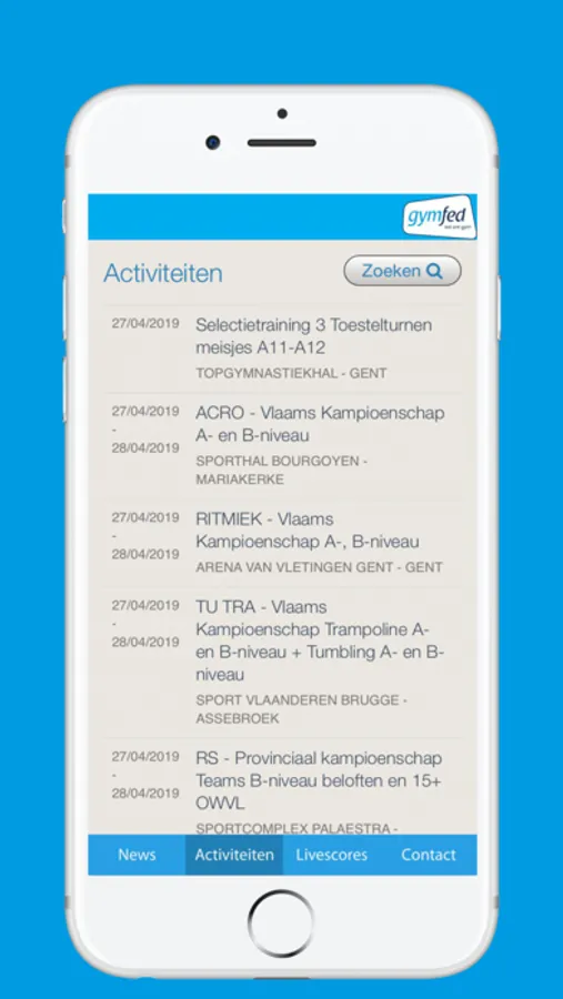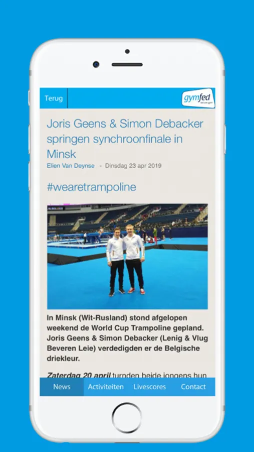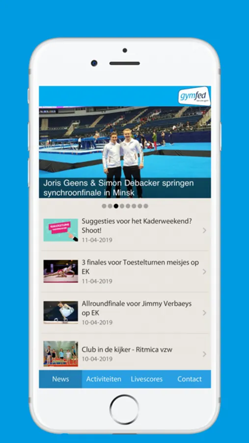De GymFed-app is een applicatie speciaal ontwikkeld om de gymfans nog sneller op de hoogte te houden van het allerlaatste nieuws. Waar je ook bent, in een mum van tijd heb je het allerlaatste nieuws snel en eenvoudig op jouw mobiele toestel. Bovendien biedt de app de mogelijkheid om grote evenementen LIVE te volgen! Met andere woorden, dit is ongetwijfeld een meerwaarde voor jouw smartphone.