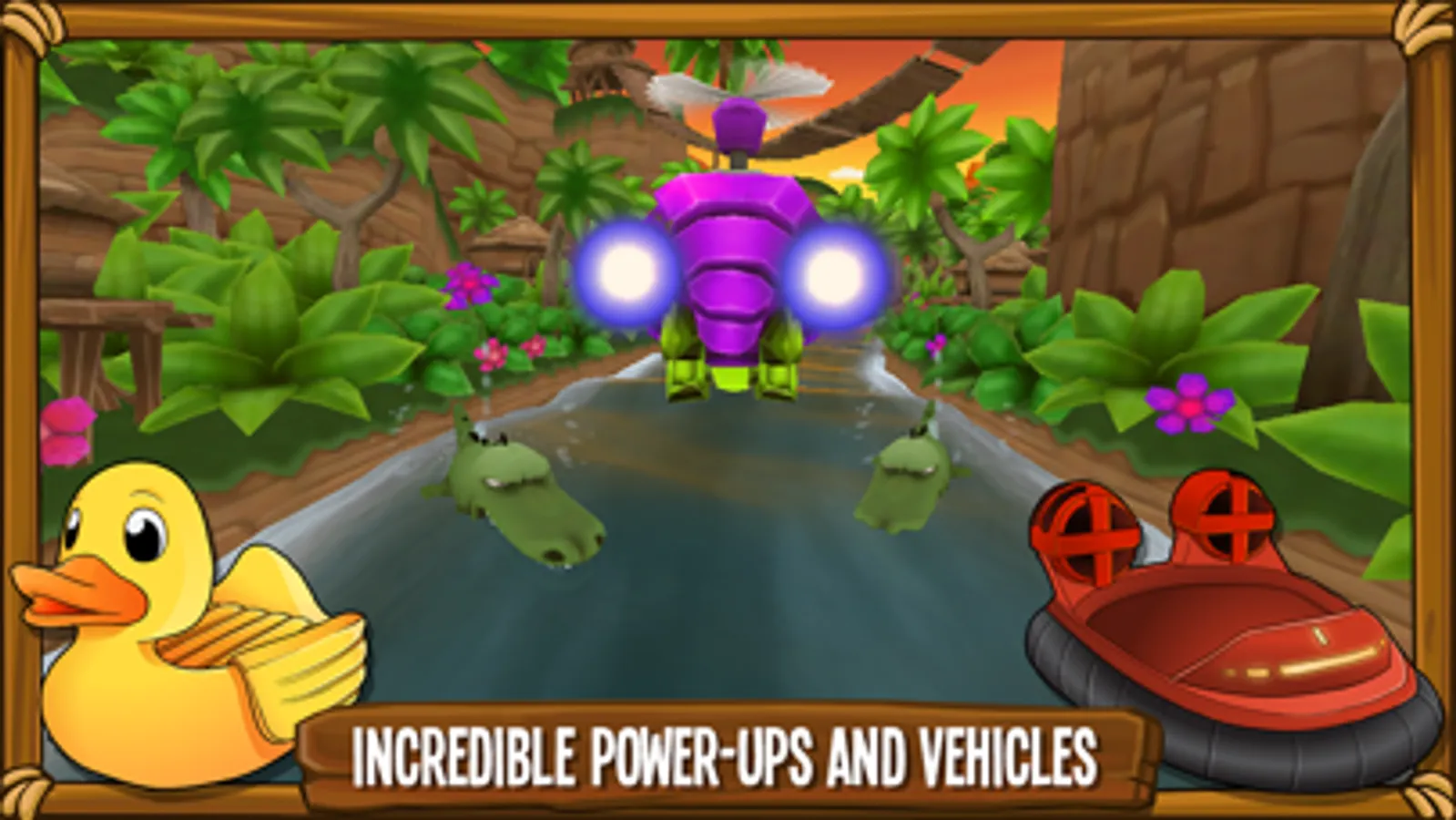 Collect shiny coins and spend them in the in-game store on power-ups such as the Pterodactyl and new boats such as the Hovercraft and Rubber Ducky.