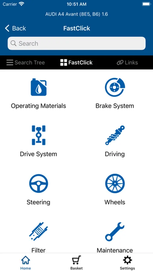 User can quickly and effectively search via part number or vehicle, and determine in which vehicles the part fit or which parts are required for the vehicle. The search is also possible via a scanning function of the EAN code. Possible criteria for quick parts identification are any article number, an OE number, a working number or by cross references.