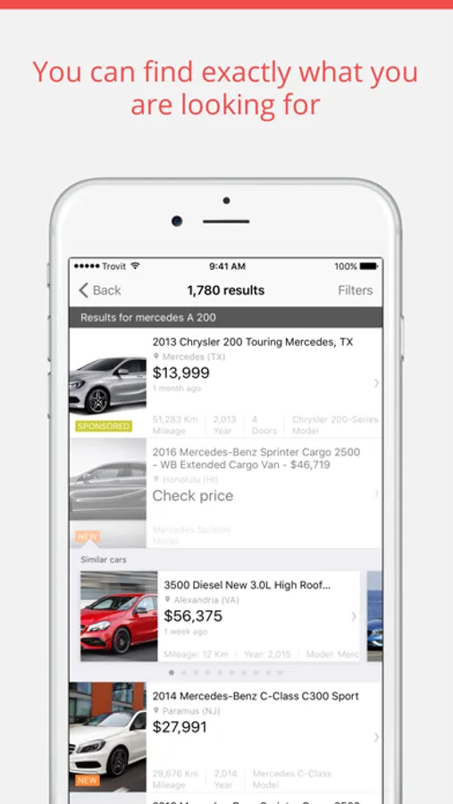 You can check as many listings as you want, absolutely free. It doesn’t matter if you are looking for a coupe, SUV, station wagon, convertible, sedan, sports car, van… you will find it at Trovit.
