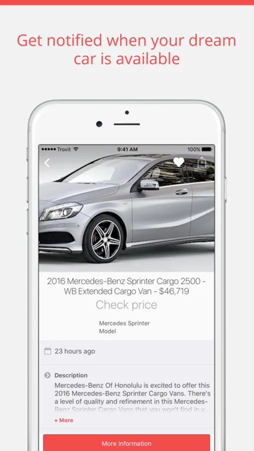 When you close the app, Trovit cars keeps working for you. Just create an alert (or several) and we will send you a notification when there’s a new ad that matches your search criteria. We follow thousands of second hand car websites minute by minute so you don’t have to. You can create as many alerts as you want to, with your ideal price, your favourite brand and model or the perfect combination of lots of factors.